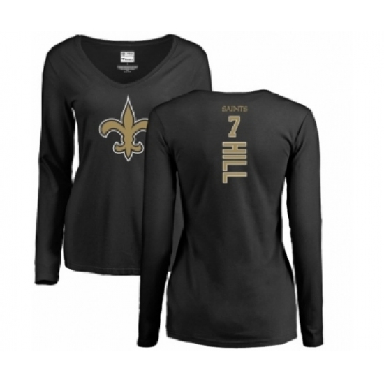 NFL Women's Nike New Orleans Saints #7 Taysom Hill Black Backer Slim Fit Long Sleeve T-Shir