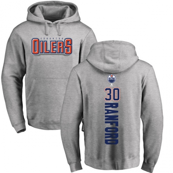 NHL Adidas Edmonton Oilers #30 Bill Ranford Ash Backer Pullover Hoodie