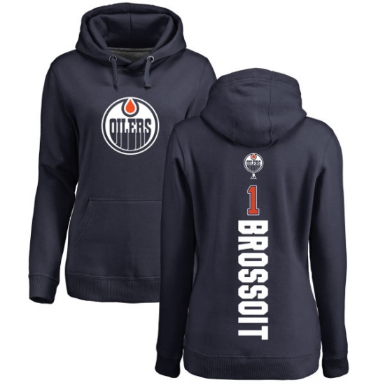 Home>NHL>Edmonton Oilers>Laurent Brossoit>NHL Women's Adidas Edmonton Oilers #1 Laurent Brossoit Navy Blue Backer Pullover Hoodie
