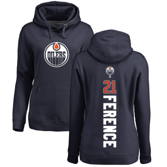 Home>NHL>Edmonton Oilers>Andrew Ference>NHL Women's Adidas Edmonton Oilers #21 Andrew Ference Navy Blue Backer Pullover Hoodie