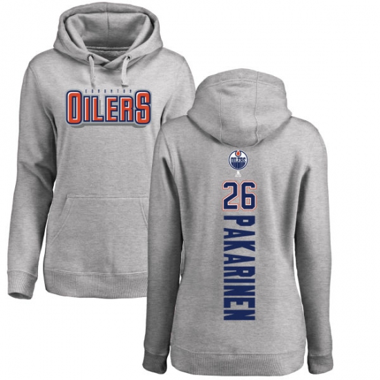 NHL Women's Adidas Edmonton Oilers #26 Iiro Pakarinen Ash Backer Pullover Hoodie