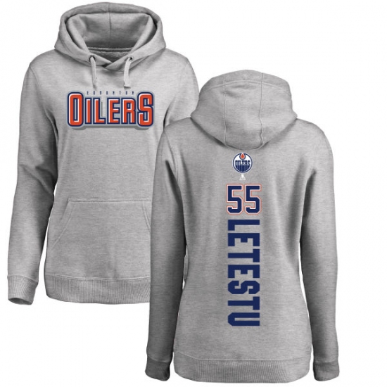NHL Women's Adidas Edmonton Oilers #55 Mark Letestu Ash Backer Pullover Hoodie