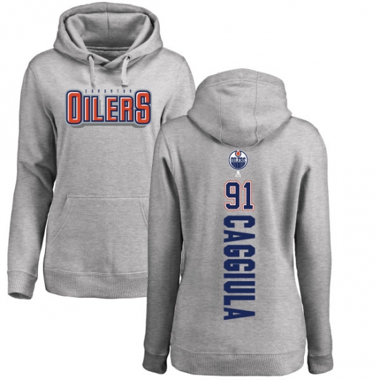NHL Women's Adidas Edmonton Oilers #91 Drake Caggiula Ash Backer Pullover Hoodie