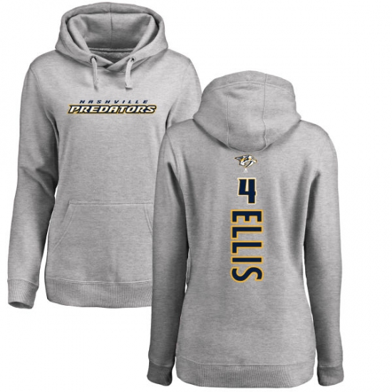 Home>NHL>Nashville Predators>Ryan Ellis>NHL Women's Adidas Nashville Predators #4 Ryan Ellis Ash Backer Pullover Hoodie