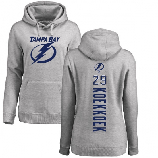 Home>NHL>Tampa Bay Lightning>Slater Koekkoek>NHL Women's Adidas Tampa Bay Lightning #29 Slater Koekkoek Ash Backer Pullover Hoodie