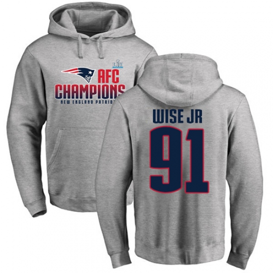 >Nike New England Patriots #91 Deatrich Wise Jr Heather Gray 2017 AFC Champions Pullover Hoodie