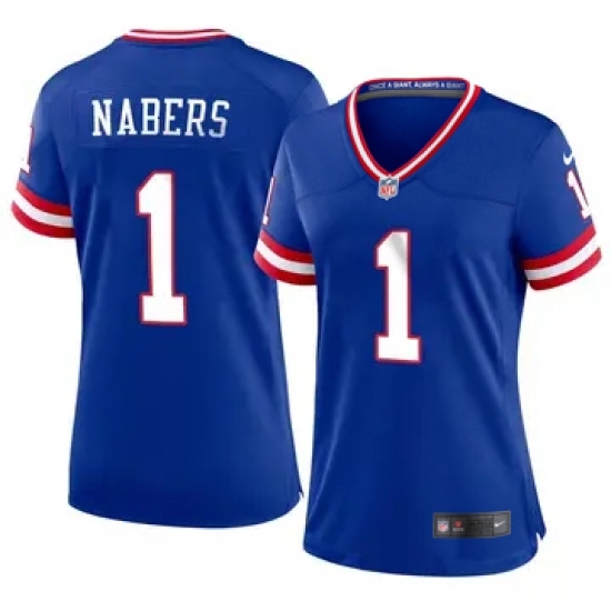 >Women New York Giants #1 Malik Nabers Royal 2024 F U S E Throwback Limited Stitched Jersey