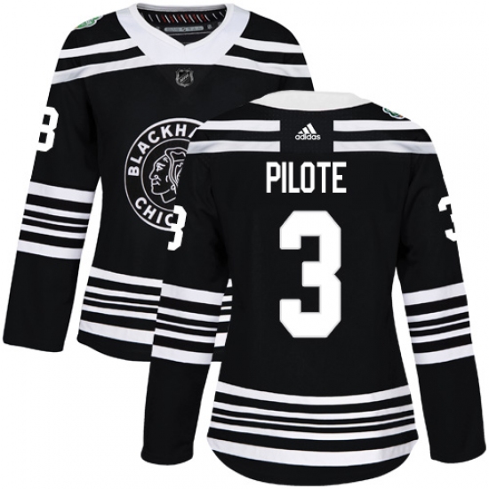 Women's Adidas Chicago Blackhawks #3 Pierre Pilote Authentic Black 2019 Winter Classic NHL Jersey