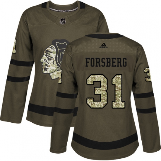 Home>NHL>Chicago Blackhawks>Anton Forsberg>Women's Adidas Chicago Blackhawks #31 Anton Forsberg Authentic Green Salute to Service NHL Jersey