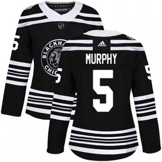 >Women's Adidas Chicago Blackhawks #5 Connor Murphy Authentic Black 2019 Winter Classic NHL Jersey