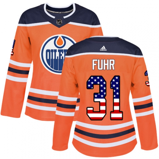 Home>NHL>Edmonton Oilers>Grant Fuhr>Women's Adidas Edmonton Oilers #31 Grant Fuhr Authentic Orange USA Flag Fashion NHL Jersey