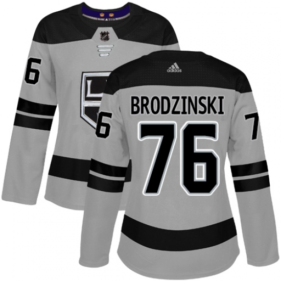 Women's Adidas Los Angeles Kings #76 Jonny Brodzinski Authentic Gray Alternate NHL Jersey