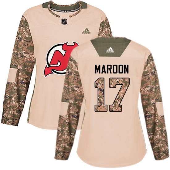 >Women's Adidas New Jersey Devils #17 Patrick Maroon Authentic Camo Veterans Day Practice NHL Jersey