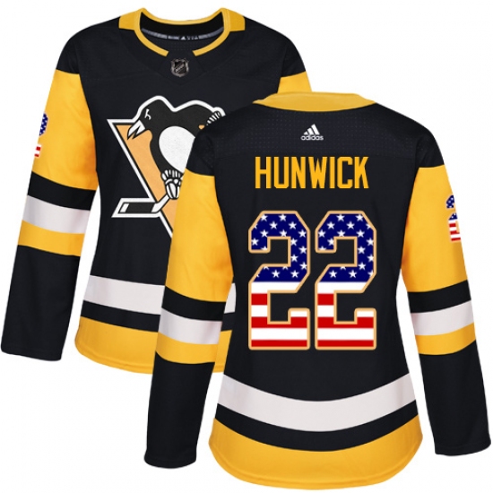Home>NHL>Pittsburgh Penguins>Matt Hunwick>Women's Adidas Pittsburgh Penguins #22 Matt Hunwick Authentic Black USA Flag Fashion NHL Jersey