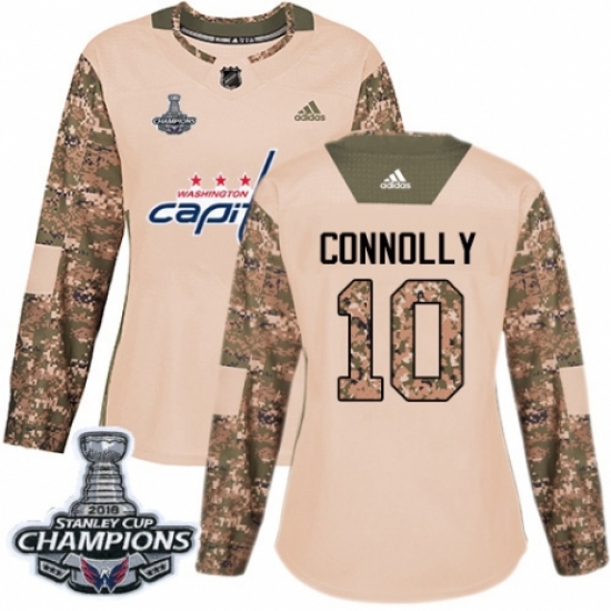 Women's Adidas Washington Capitals #10 Brett Connolly Authentic Camo Veterans Day Practice 2018 Stanley Cup Final Champions NHL Jersey