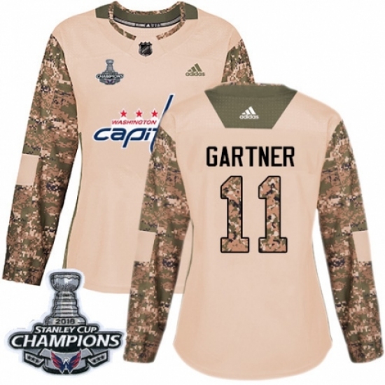 Women's Adidas Washington Capitals #11 Mike Gartner Authentic Camo Veterans Day Practice 2018 Stanley Cup Final Champions NHL Jersey
