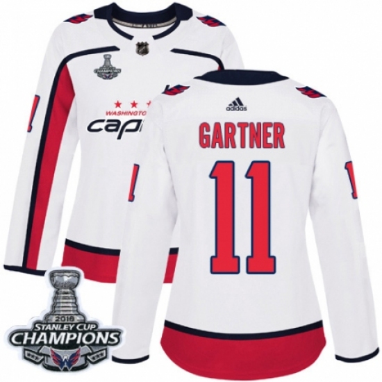 Women's Adidas Washington Capitals #11 Mike Gartner Authentic White Away 2018 Stanley Cup Final Champions NHL Jersey