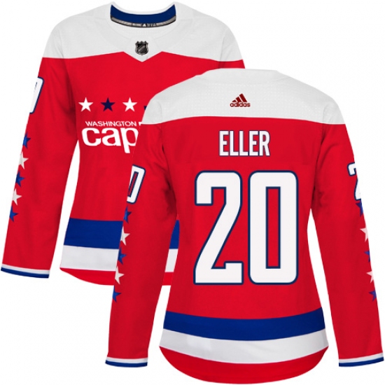 >Women's Adidas Washington Capitals #20 Lars Eller Authentic Red Alternate NHL Jersey