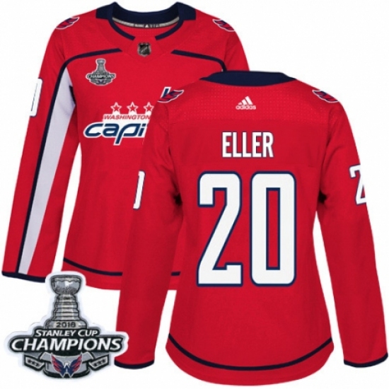Women's Adidas Washington Capitals #20 Lars Eller Authentic Red Home 2018 Stanley Cup Final Champions NHL Jersey