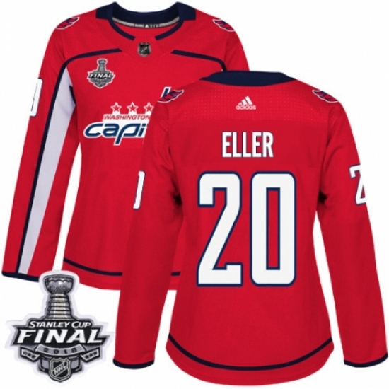 Women's Adidas Washington Capitals #20 Lars Eller Authentic Red Home 2018 Stanley Cup Final NHL Jersey
