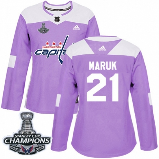 Women's Adidas Washington Capitals #21 Dennis Maruk Authentic Purple Fights Cancer Practice 2018 Stanley Cup Final Champions NHL Jersey