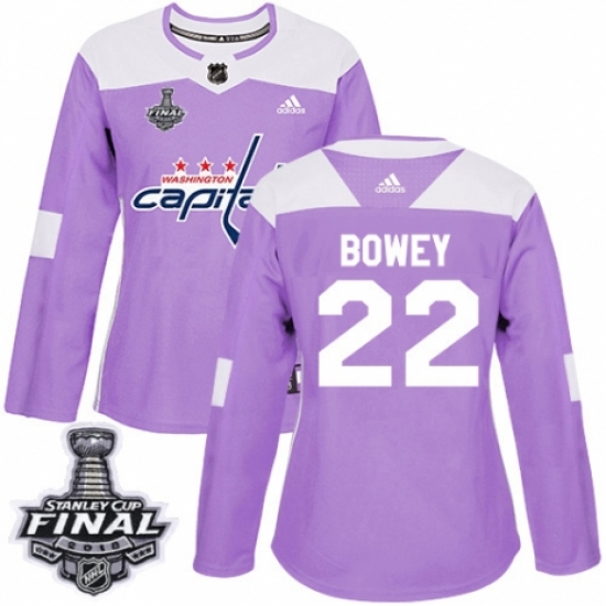 Women's Adidas Washington Capitals #22 Madison Bowey Authentic Purple Fights Cancer Practice 2018 Stanley Cup Final NHL Jersey