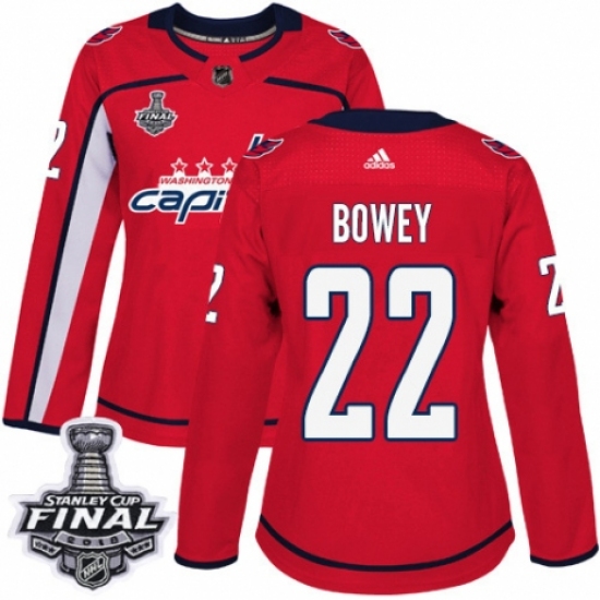 Women's Adidas Washington Capitals #22 Madison Bowey Authentic Red Home 2018 Stanley Cup Final NHL Jersey