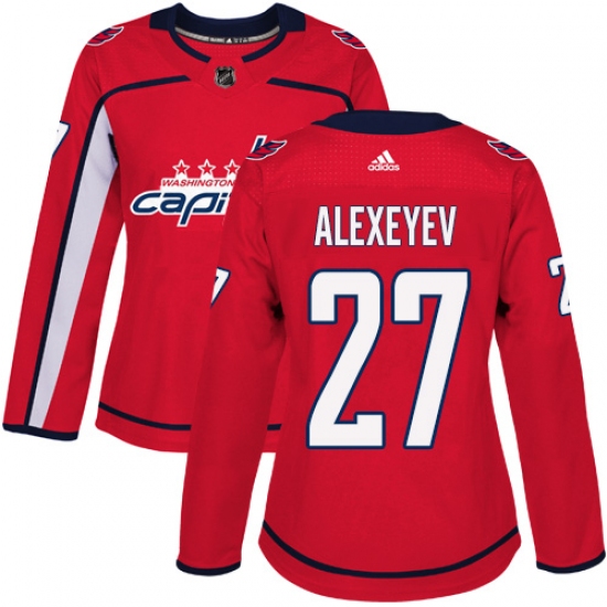 Women's Adidas Washington Capitals #27 Alexander Alexeyev Authentic Red Home NHL Jersey