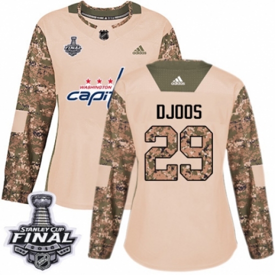 Women's Adidas Washington Capitals #29 Christian Djoos Authentic Camo Veterans Day Practice 2018 Stanley Cup Final NHL Jersey