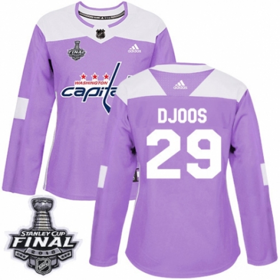 Women's Adidas Washington Capitals #29 Christian Djoos Authentic Purple Fights Cancer Practice 2018 Stanley Cup Final NHL Jersey