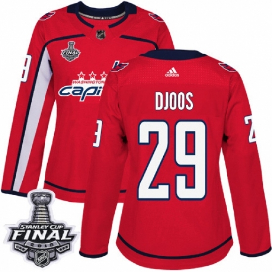 Women's Adidas Washington Capitals #29 Christian Djoos Authentic Red Home 2018 Stanley Cup Final NHL Jersey