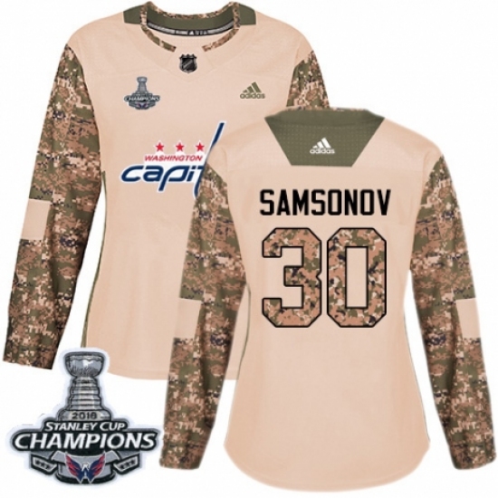 Women's Adidas Washington Capitals #30 Ilya Samsonov Authentic Camo Veterans Day Practice 2018 Stanley Cup Final Champions NHL Jersey