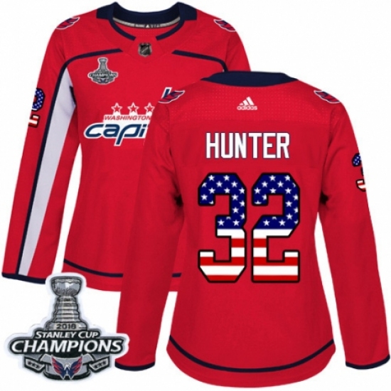 Women's Adidas Washington Capitals #32 Dale Hunter Authentic Red USA Flag Fashion 2018 Stanley Cup Final Champions NHL Jersey