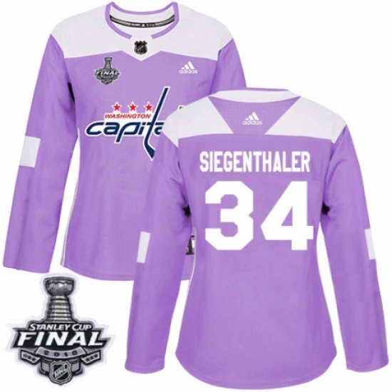 >Women's Adidas Washington Capitals #34 Jonas Siegenthaler Authentic Purple Fights Cancer Practice 2018 Stanley Cup Final NHL Jersey