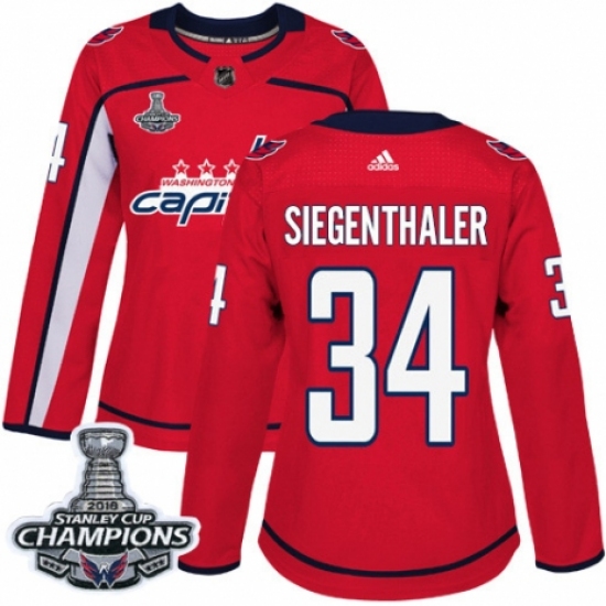 Women's Adidas Washington Capitals #34 Jonas Siegenthaler Authentic Red Home 2018 Stanley Cup Final Champions NHL Jersey