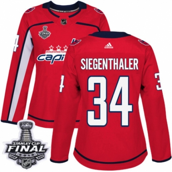 Women's Adidas Washington Capitals #34 Jonas Siegenthaler Authentic Red Home 2018 Stanley Cup Final NHL Jersey