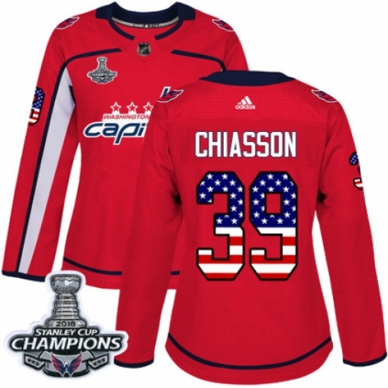 >Women's Adidas Washington Capitals #39 Alex Chiasson Authentic Red USA Flag Fashion 2018 Stanley Cup Final Champions NHL Jersey