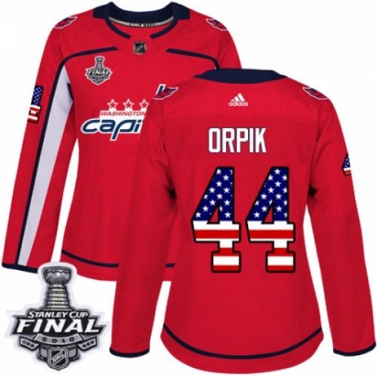 Women's Adidas Washington Capitals #44 Brooks Orpik Authentic Red USA Flag Fashion 2018 Stanley Cup Final NHL Jersey