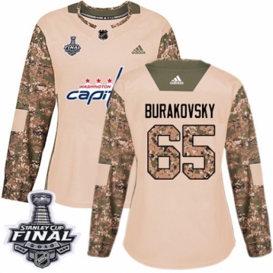 Women's Adidas Washington Capitals #65 Andre Burakovsky Authentic Camo Veterans Day Practice 2018 Stanley Cup Final NHL Jersey