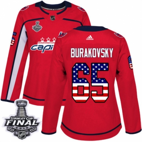 Women's Adidas Washington Capitals #65 Andre Burakovsky Authentic Red USA Flag Fashion 2018 Stanley Cup Final NHL Jersey