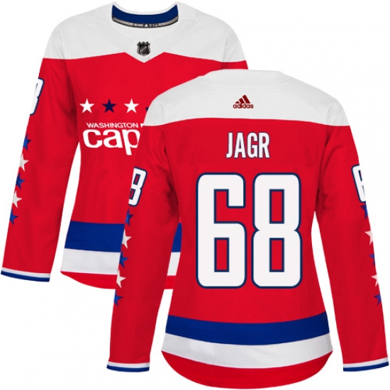 Women's Adidas Washington Capitals #68 Jaromir Jagr Authentic Red Alternate NHL Jersey