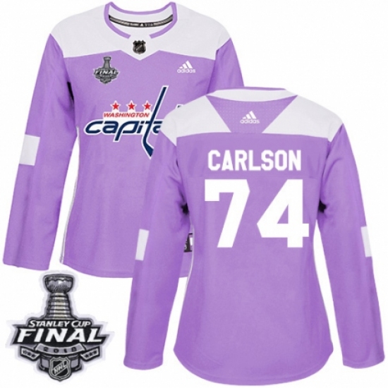 Women's Adidas Washington Capitals #74 John Carlson Authentic Purple Fights Cancer Practice 2018 Stanley Cup Final Champions NHL Jersey