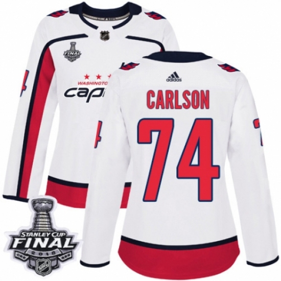 Women's Adidas Washington Capitals #74 John Carlson Authentic White Away 2018 Stanley Cup Final NHL Jersey