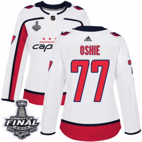Women's Adidas Washington Capitals #77 T.J. Oshie Authentic White Away 2018 Stanley Cup Final NHL Jersey