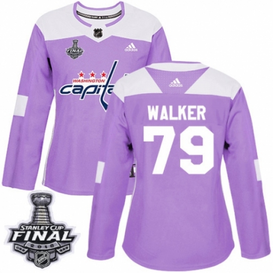 Women's Adidas Washington Capitals #79 Nathan Walker Authentic Purple Fights Cancer Practice 2018 Stanley Cup Final NHL Jersey