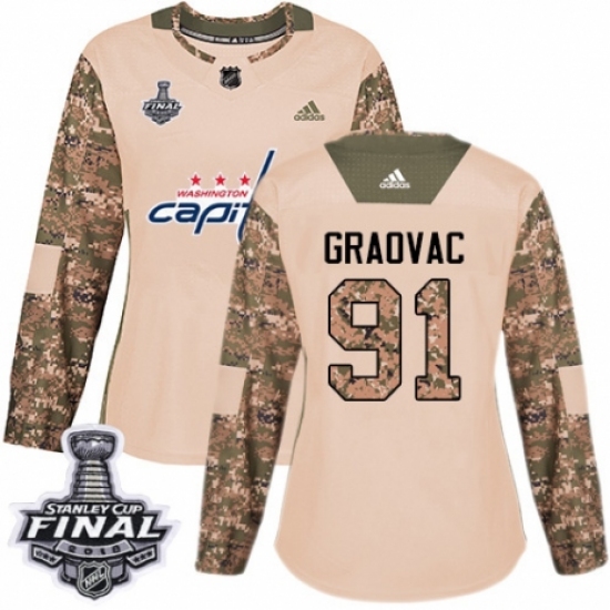 Women's Adidas Washington Capitals #91 Tyler Graovac Authentic Camo Veterans Day Practice 2018 Stanley Cup Final NHL Jersey