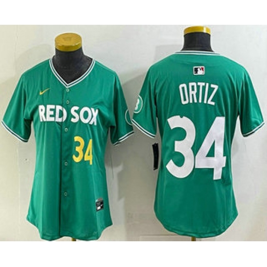 >Women's Boston Red Sox #34 David Ortiz Green 2025 City Connect Player Name Limited Jersey