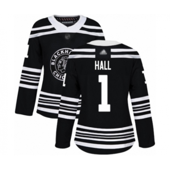 Women's Chicago Blackhawks #1 Glenn Hall Authentic Black Alternate Hockey Jersey