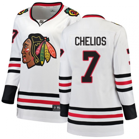 Women's Chicago Blackhawks #7 Chris Chelios Authentic White Away Fanatics Branded Breakaway NHL Jersey