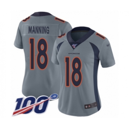 Women's Denver Broncos #18 Peyton Manning Limited Silver Inverted Legend 100th Season Football Jersey